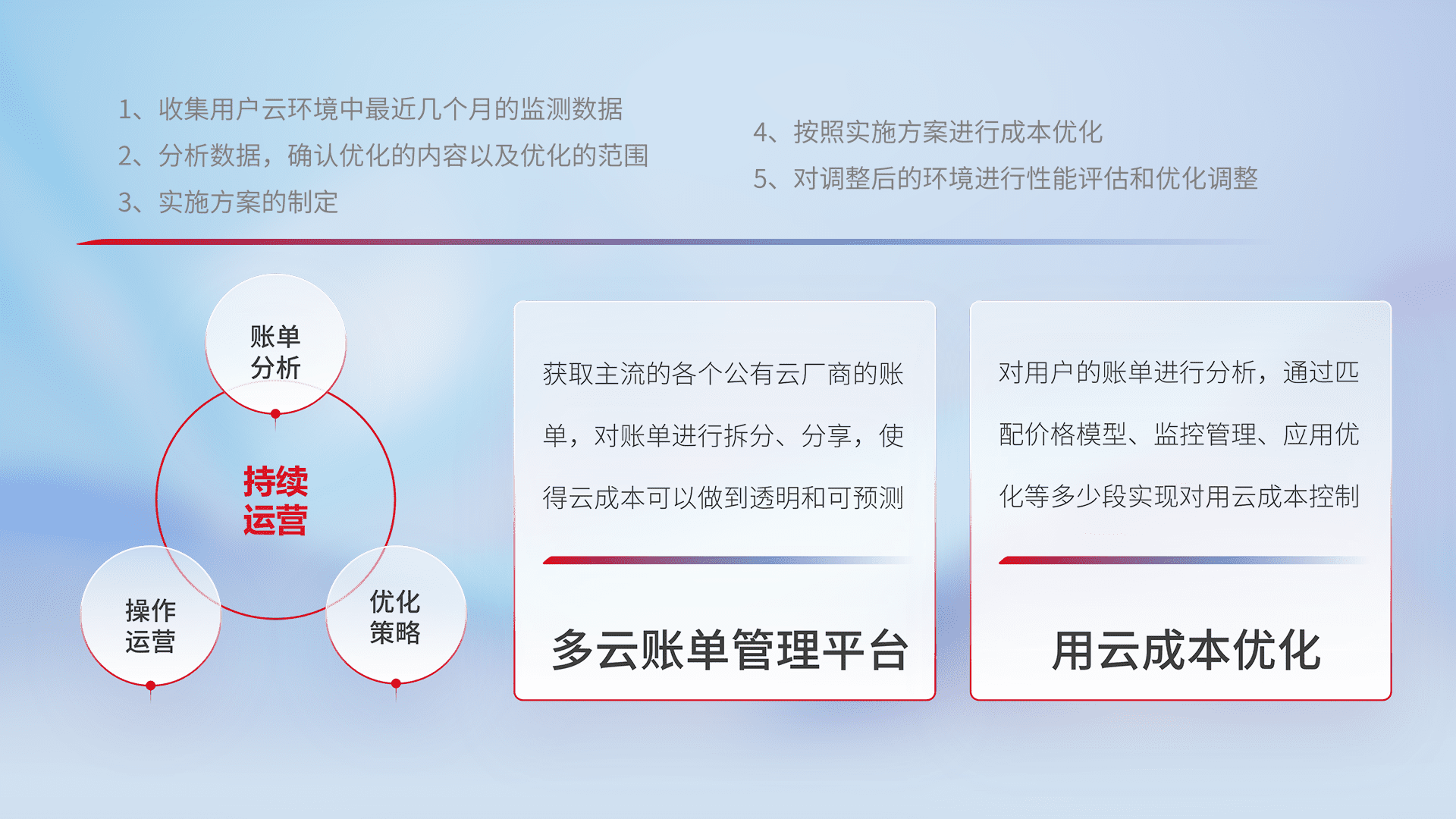 监控业务系统资源开销,,,对资源的消耗精确计量,,,,实现费用的透明化管理,,不断提升资源使用率,,,调整资源购买方式,,,,降低资源费用成本,,用云成本可预测、、、用云费用可优化,,云资源配额有据可依。。